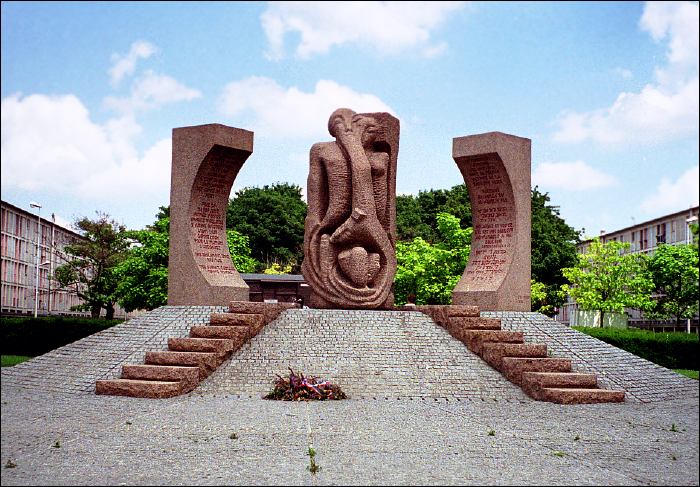 Sculpture commérative de Schelomo Selinger devant la cité de la Muette (camp de Drancy) sur l’esplanade Charles de Gaulle.