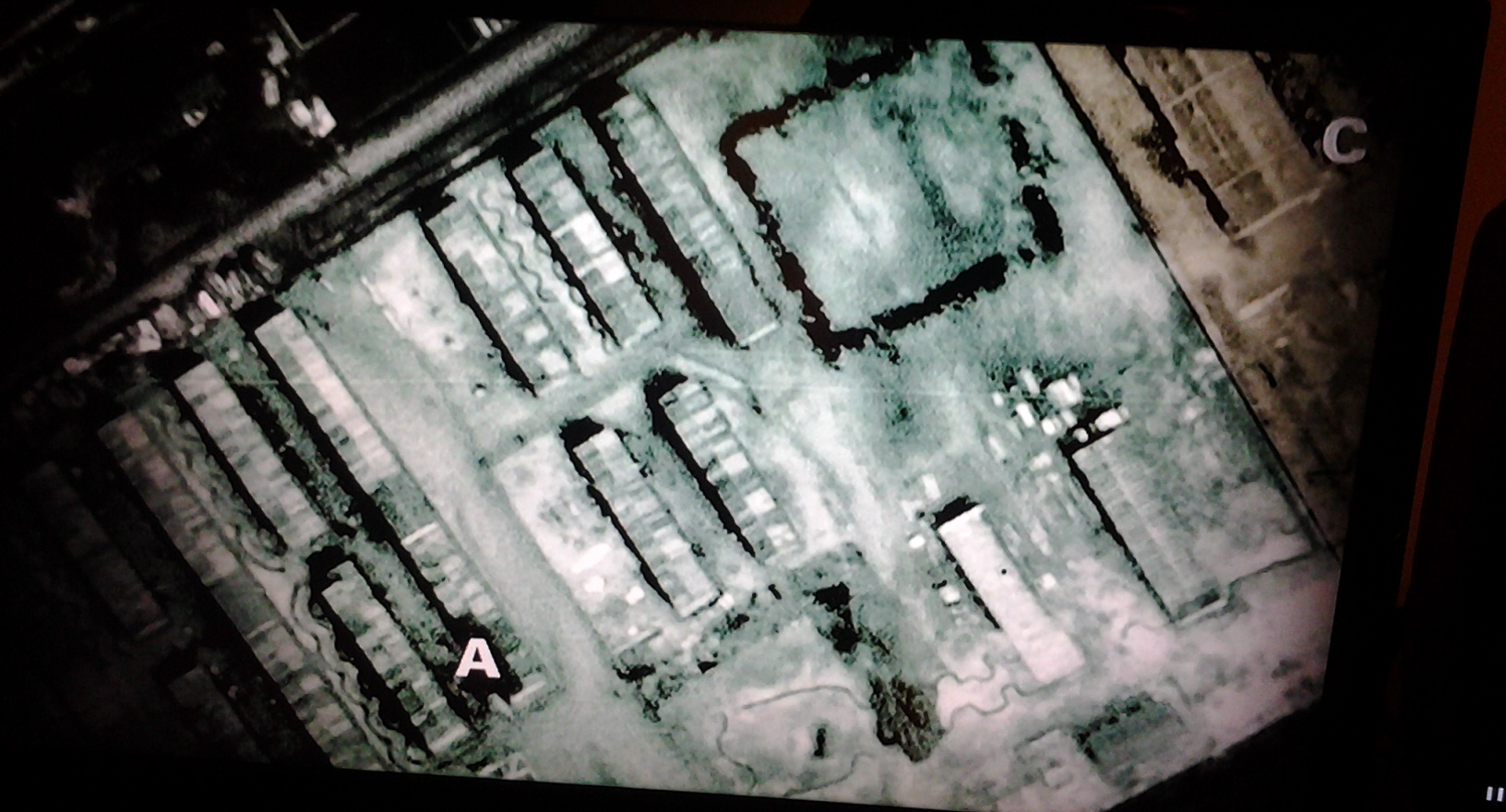 Photo aérienne (1944) pendant un appel à Bergen-Belsen, dans le sous-camp « camp de l’étoile » ou « camp de l’échange ». [Extrait du film de Teri Wehn Damish, Les enfants otages de Bergen-Belsen. 52 min. Cinétévé/France télévisions, 2013].