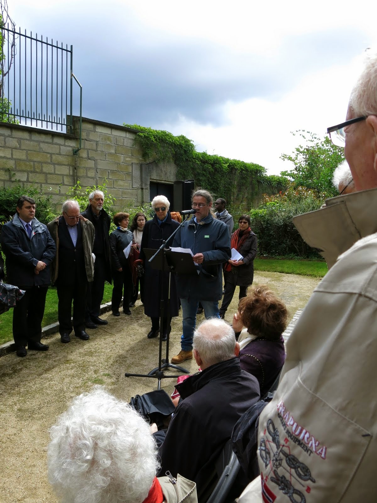 11 mai 2014. Commémoration au Père-Lachaise. Mon discours aux côtés de Francine Christophe et des derniers survivants de Bergen-Belsen [Photo Philippe Weyl].