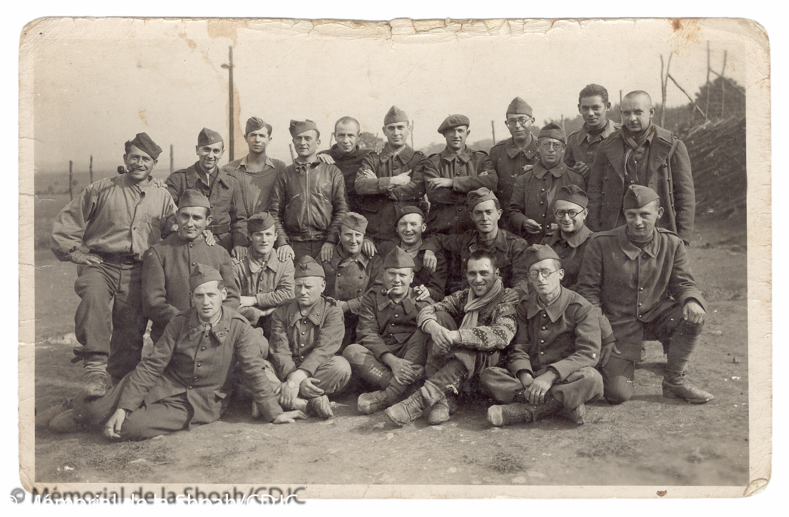 16 juin 1940 – 3 avril 1941 : Stalag XVII A à Kaisersteinbruch 1 sur 1 Il est interné comme Prisonnier de Guerre (P.G.) dans ce stalag de la 17è région militaire du Reich nazi, d’où il tenta de s’évader. [photo : Jacques Jacob au Stalag, à gauche debout avec une cigarette à la main. A ce jour il m’est impossible de dire si c’est dans ce stalag ou le second, à Hemer où il fut transféré ensuite. – Fonds Lisette Gal-El].