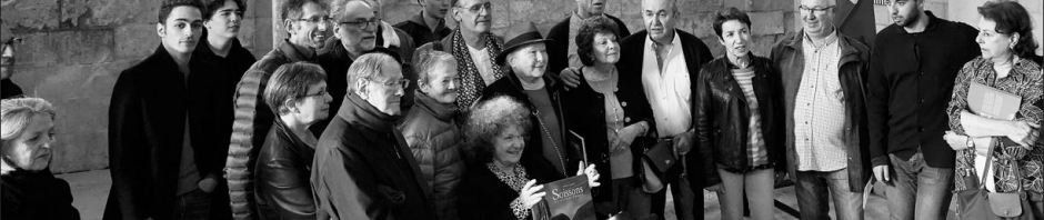 Cérémonie des Justes parmi les Nations dans la salle des fêtes de la mairie de Soissons le 7 avril 2013. Au premier plan, Galit et Lisette. Au bout du rang, Jean Laplace, le fils aîné de « Néné » qui reçut la médaille pour ses parents à titre posthume.