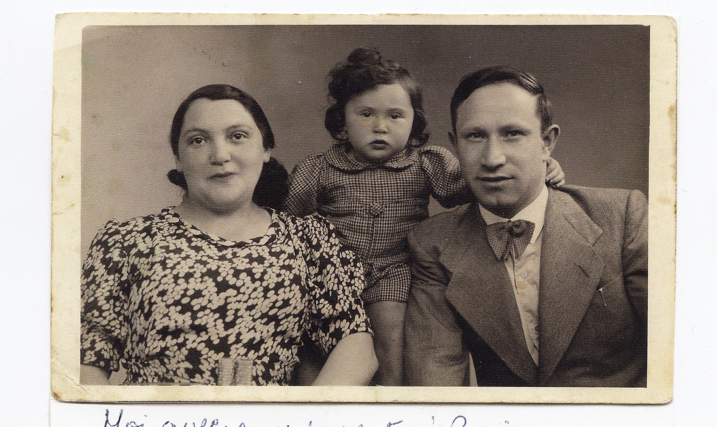 ![Chaja (née Wajsfelner), Abraham Goldsztajn et leur fille Suzanne, vers 1937-38