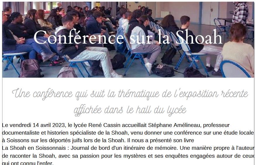 Des élèves et leurs professeurs qui m’invitent dans des rencontres-conférences sur ce sujet ; je n’en finis plus de les compter depuis la sortie de mon livre « La Shoah en Soissonnais » et tous m’accueillent avec une telle gentillesse. Ils ont été des milliers de collégiens depuis cinq ans à m’entendre et me poser des montagnes de questions sur ce drame génocidaire.