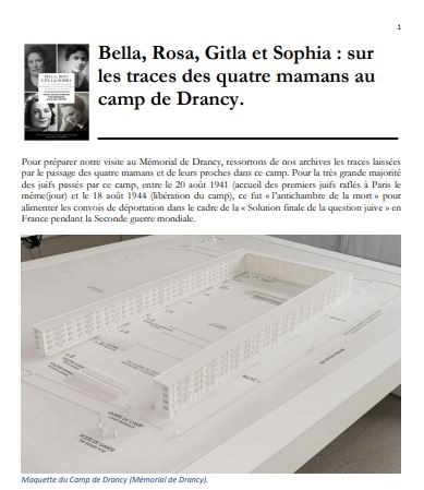 Pour aller plus loin, vous pouvez découvrir l’histoire, la chronologie, du passage de ces quatre mamans, maris, et pour Bella, ses deux enfants, à Drancy, entre le 21 juillet 1942 et le 30 juin 1944 :