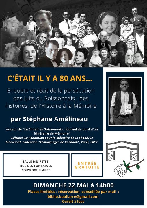 Samedi 14 mai 2022 : A la librairie des Fables à Château-Thierry (02- Aisne) Rencontre et dédicace autour du livre « La Shoah en Soissonnais : Journal de bord d’un itinéraire de Mémoire », et en tant que professeur documentaliste : présentation d’une sélection de BD abordant la Shoah.