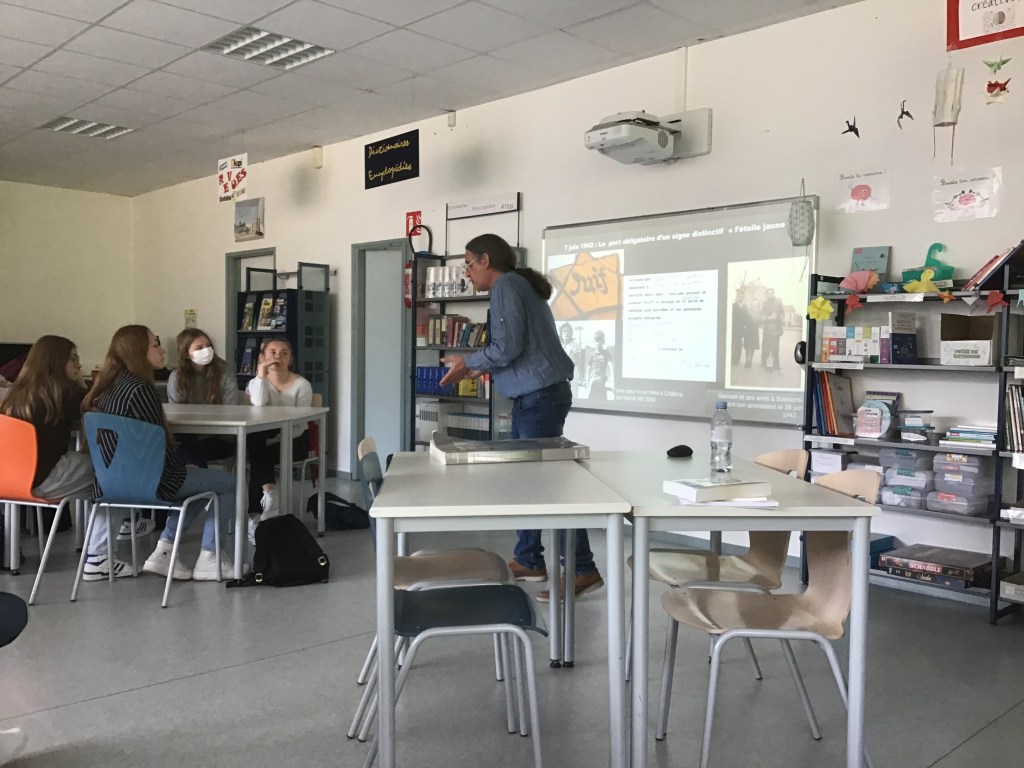 Jeudi 24 mars 2022 : Belle rencontre dans mon CDI à Château-Thierry entre nos classes de 3e et BTS 1ère année en Hôtellerie-Restauration et Viviane Harif (née Bich en 1941), enfant juive cachée de Soissons et fille de déportés à Auschwitz en 1944. Un échange et un témoignage qui a touché au coeur nos élèves.
