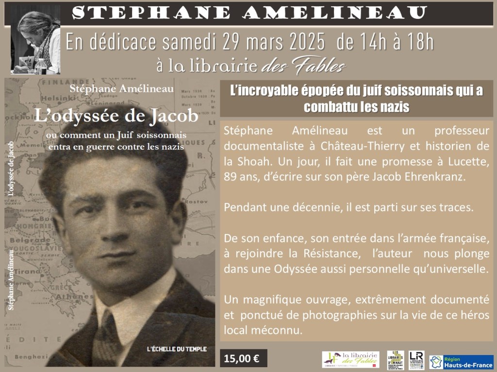 Samedi 29 mars 2025 : Dédicace pour le livre « L’odyssée de Jacob », à la librairie des Fables de Château-Thierry, de 14h à 18h (02-Aisne)